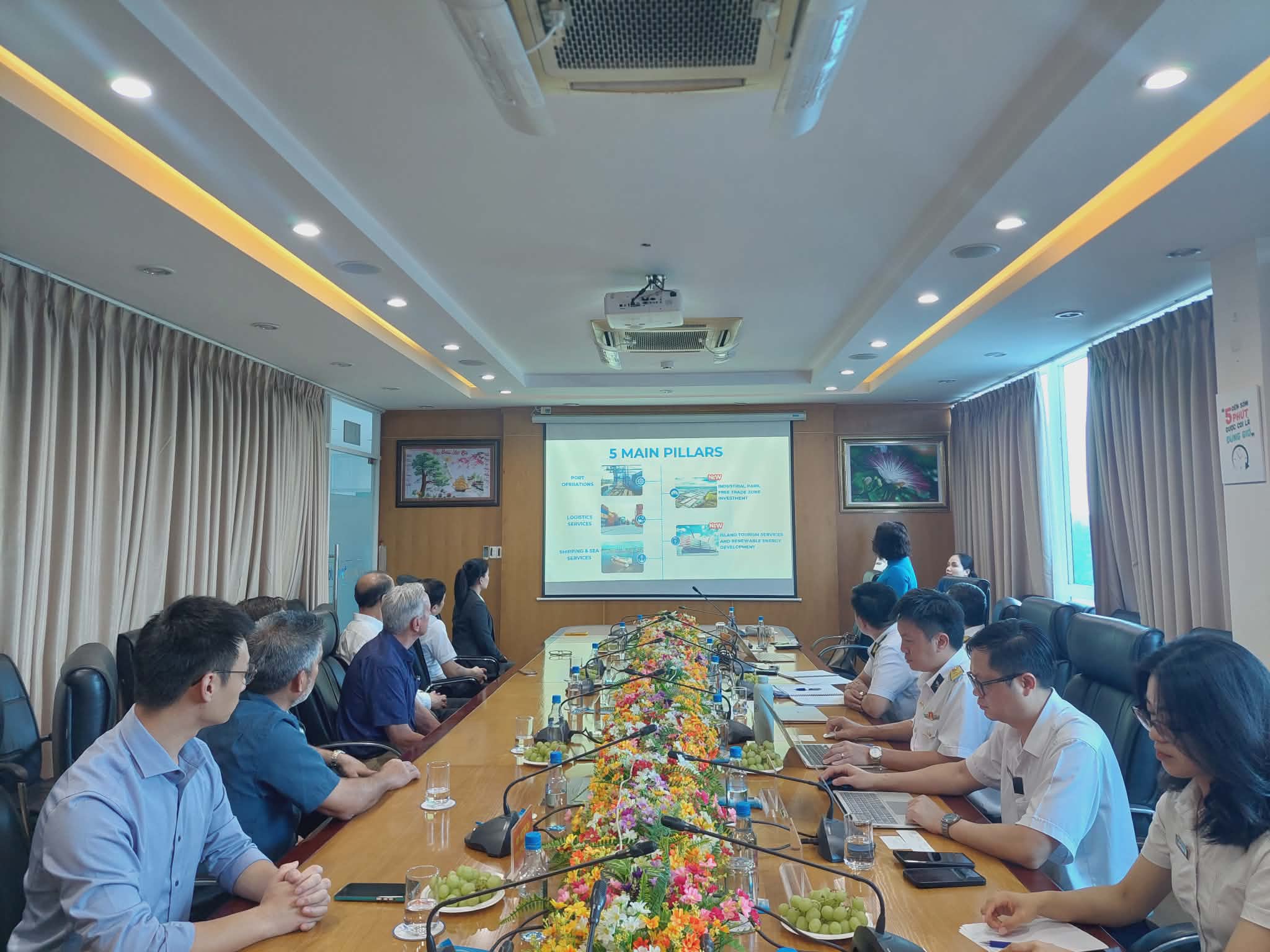 Ảnh 2: Phái đoàn hãng tàu Matson lắng nghe giới thiệu về hệ sinh thái 5 trụ cột của Tân Cảng Sài Gòn.